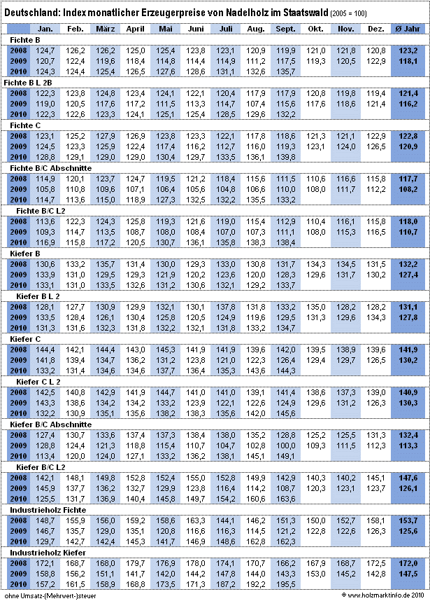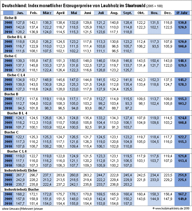 Index der Rundholzpreise im Staatswald